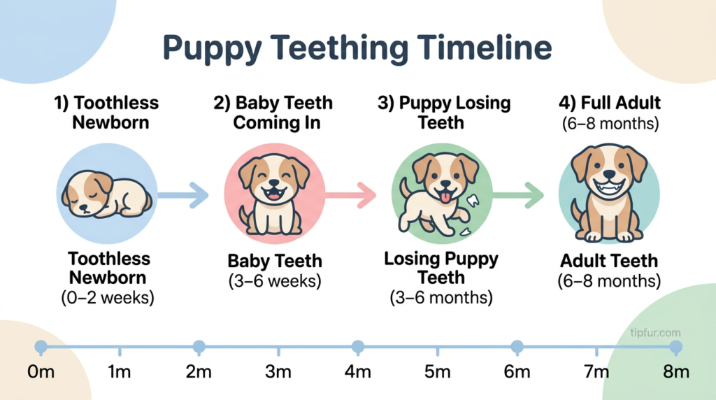 | Birth–2 weeks | No visible teeth | Newborn puppies are toothless and rely entirely on their mother’s milk. |